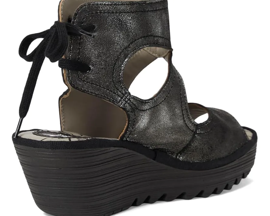 - A back-lace design makes the FLY LONDON® YULP571FLY easy to get on and off. The cut out design gives it a cool and unique look. Comfortable enough to wear all day, the heel-to-toe cushion insole, rounded toe shape with leather uppers and linings cradle your feet.