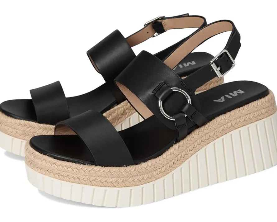 - Bring your style to new heights with the MIA™ Yuna featuring a ring detail, adjustable buckle, and braided raffia for the perfect blend of versatility and trend. This rounded toe style is finished on the MIA signature footbed for maximum comfort and ready to take on whatever the day brings – and look good doing it.