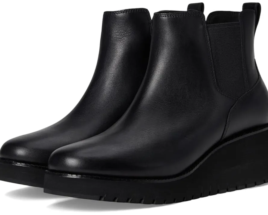 - These Cole Haan® Zerogrand City Wedge Boots are the perfect combination of style and comfort. With leather waterproof upper and fully padded leather sock lining, your feet will stay dry and comfortable all day long. The EVA insole and midsole provide added support and cushioning, while the round toe design and wedge heels give you a stylish lift. These ankle-high boots are sure to become your go-to pair for any occasion.