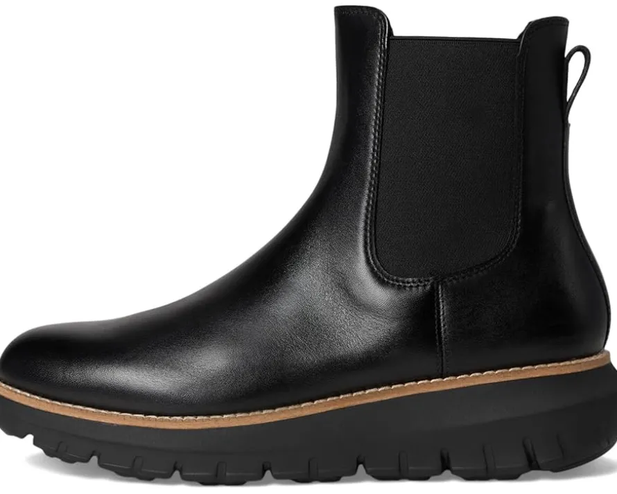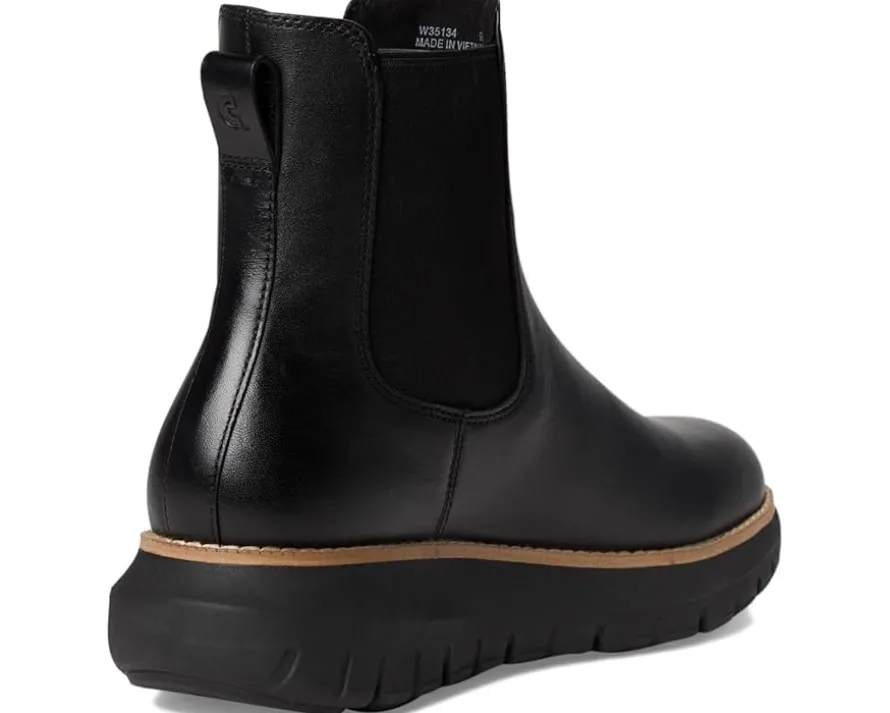 - The Chelsea silhouette of the Cole Haan® Zerogrand Rexanna Chelsea Waterproof Boots allows for ease of entry, while functional waterproof construction keeps you dry and comfortable wherever life leads you. Their smart design and engineering mimic the foot’s natural motion. These ankle-high boots are made of a leather upper, EVA insole, and textile lining. The EVA midsole with rubber outsole offers enhanced underfoot comfort and flex grooves that provide a more natural feel. Their side gore panels ensure easy on and off. Move smoothly from heel to toe with less fatigue, wearing these leather boots.