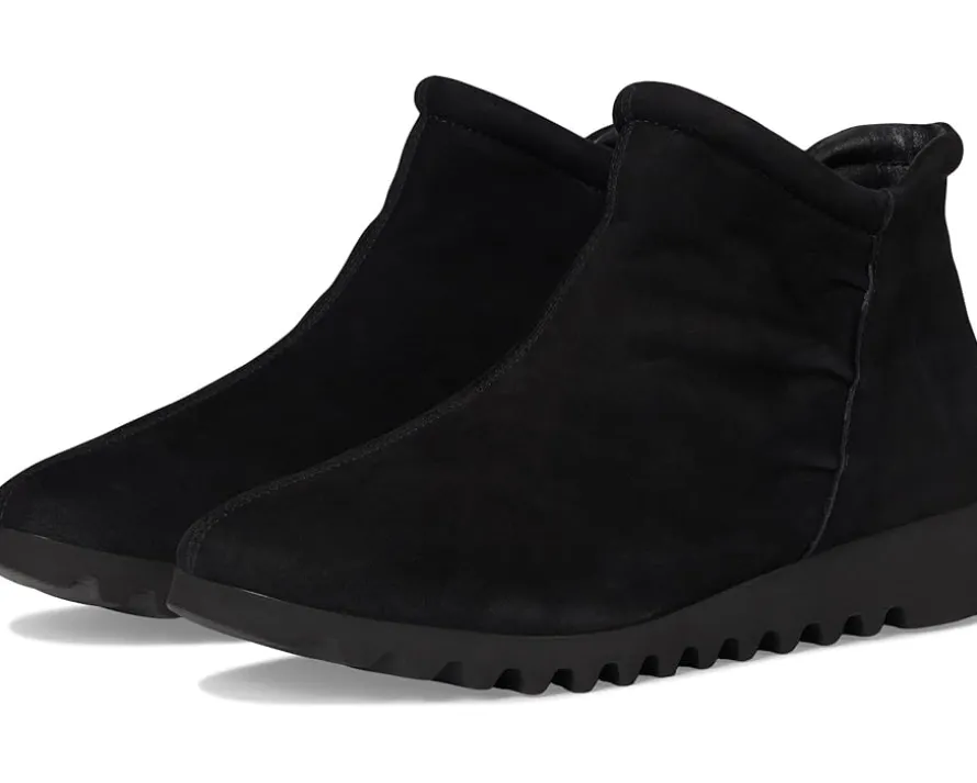 - Made for the Journey, Styled for the Spotlight, the Aetrex® Zoey is crafted from suede upper, polyester lining, and EVA insole. The Aetrex Orthotic System is built-In to every pair and features arch support that helps to stabilize your body, align your feet and relieve common foot pain. It comes with a closed round toe, mid-top silhouette, wedge heel, and zippered side closure.